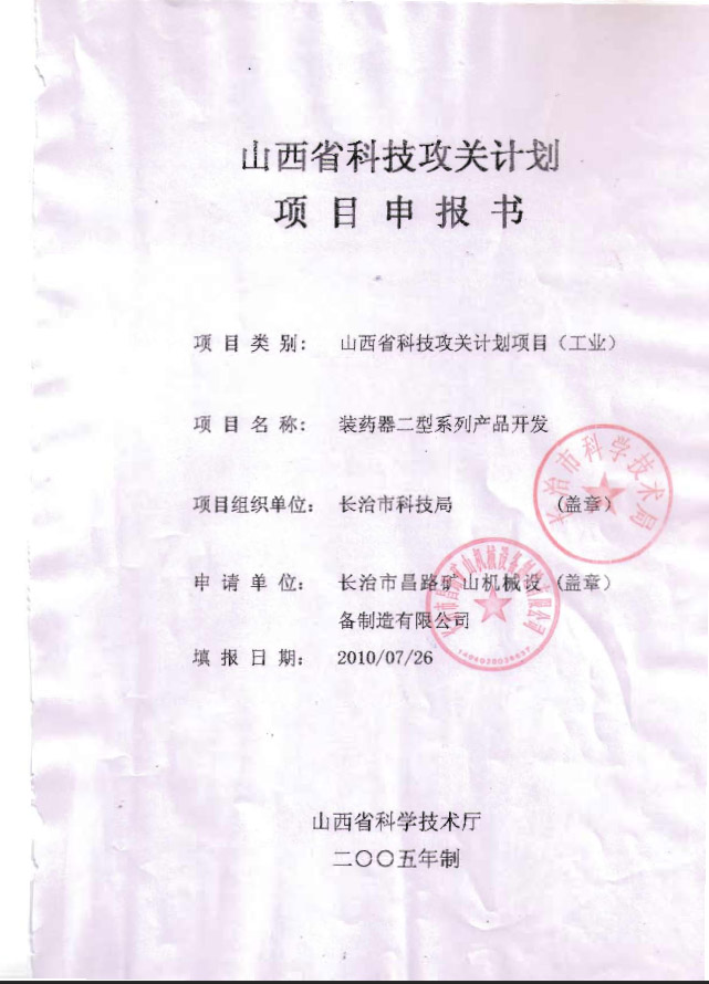 裝藥器二型開發(fā)科技局申報